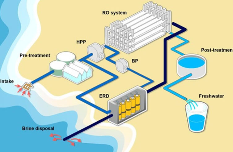 Sa napretkom tehnologija desalinizacije, poput reverzne osmoze (RO) i nanofiltracije (NF), morska voda postala je zanimljiv izvor vode za rješavanje nedostatka slatke vode. Ovaj postupak se može primjeniti gde god je potreban pouzdan izvor vode. Napredak ostvaren u proizvodnji ključne opreme (membrane, pumpe, uređaj za povrat troškova energije) učinio je postupak energetski efikasnim, što je rezultiralo niskim troškovima ulaganja (CAPEKS) i malim operativnim troškovima (OPEKS). Da bismo naše postrojenja za desalinizaciju prilagodili vašim lokalnim potrebama, nudimo kontejnerske mobilne jedinice od unosa do distribucije do proizvodnog kapaciteta od 150 m3 / h desalinizovane vode.